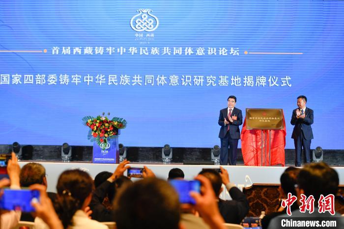 開幕式上,段毅君和西藏自治區(qū)黨委常委、宣傳部部長(zhǎng),西藏自治區(qū)著力創(chuàng)建全國民族團(tuán)結(jié)進(jìn)步模范區(qū)專項(xiàng)組副組長(zhǎng)汪海洲為國家四部委“鑄牢中華民族共同體意識(shí)研究基地”揭牌。