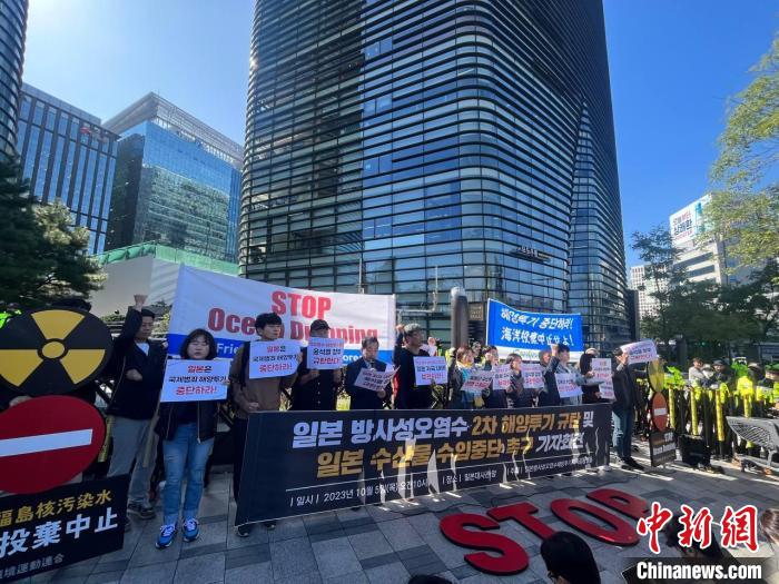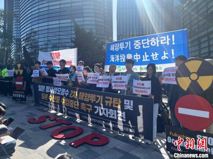 中新社首爾10月5日電 (劉旭 金琳)5日上午,韓國市民團(tuán)體在位于首爾鐘路區(qū)的日本駐韓國大使館前舉行記者招待會(huì)和集會(huì),譴責(zé)日本福島第一核電站核污染水第二輪排海,并敦促韓國政府停止進(jìn)口日本水產(chǎn)品。