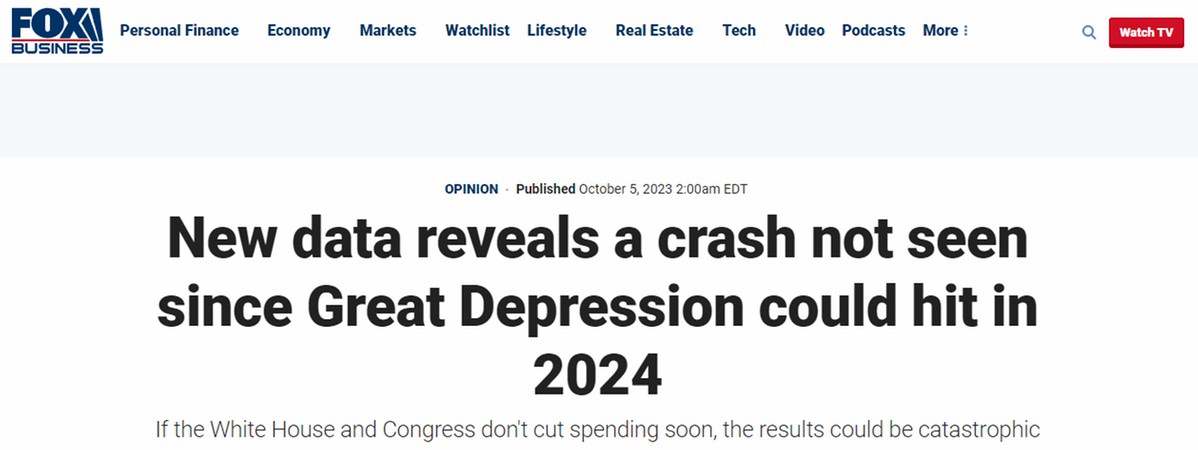報(bào)道中寫(xiě)道,越來(lái)越多的數(shù)據(jù)表明,一場(chǎng)破壞性超過(guò)大蕭條的經(jīng)濟(jì)崩盤(pán)可能即將在2024年降臨美國(guó)。白宮和國(guó)會(huì)如果不盡快削減政府支出,結(jié)果可能是災(zāi)難性的。