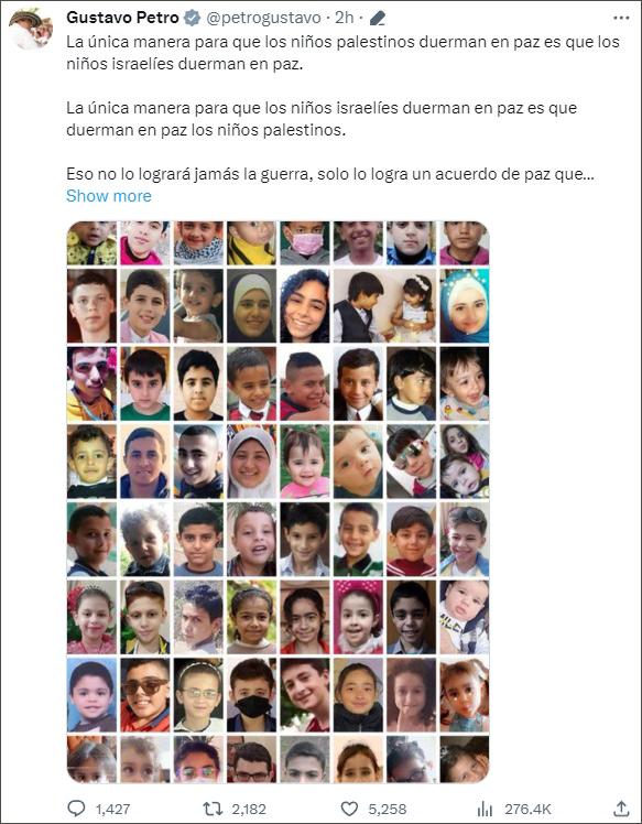 10月8日,佩特羅還發(fā)布了一張據(jù)稱是遭以色列殺害的巴勒斯坦少年兒童的照片。
