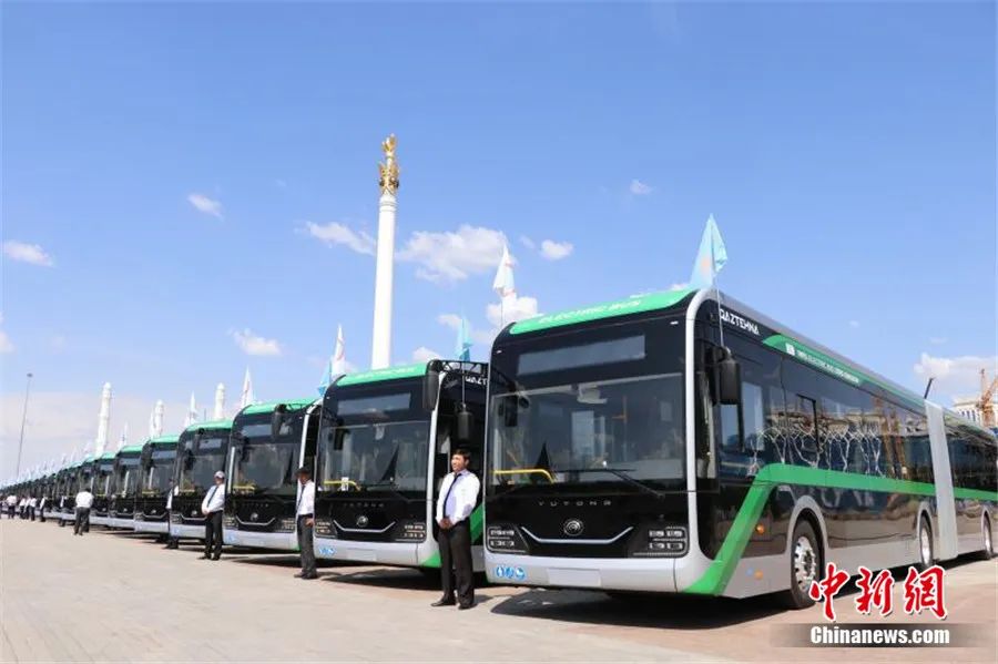 2023年7月4日,來(lái)自中國(guó)的宇通客車(chē)批量交付儀式在哈薩克斯坦首都阿斯塔納獨(dú)立廣場(chǎng)舉行。張碩 攝