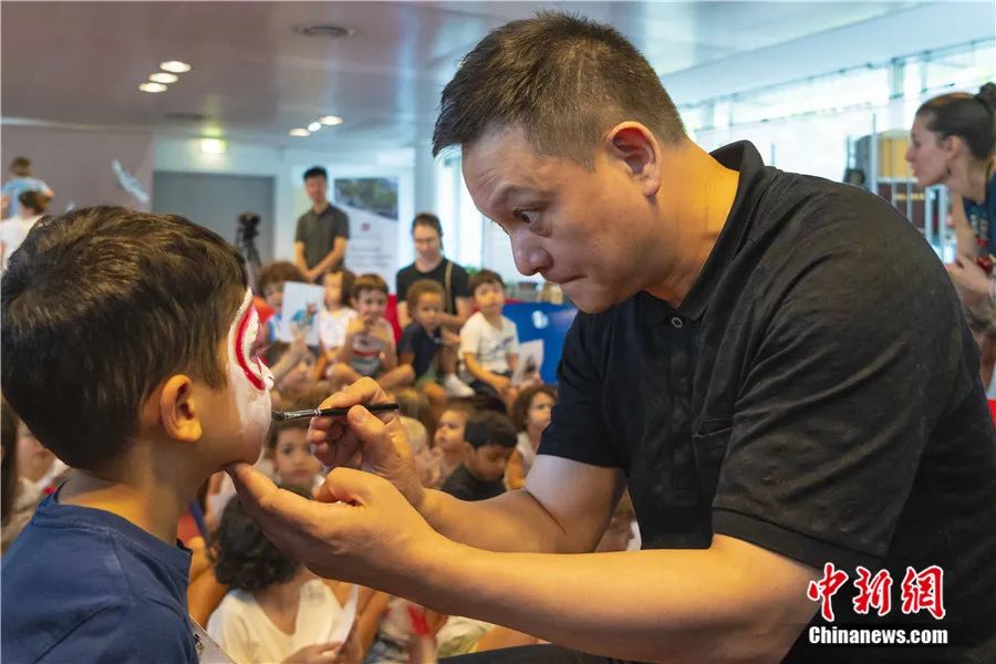 2023年9月赴法演出期間,昆曲走進當(dāng)?shù)氐牟┪镳^、大學(xué)校園以及中國文化中心的工作坊。圖為柯軍帶領(lǐng)當(dāng)?shù)貙W(xué)生體驗昆曲扮相??萝?供圖