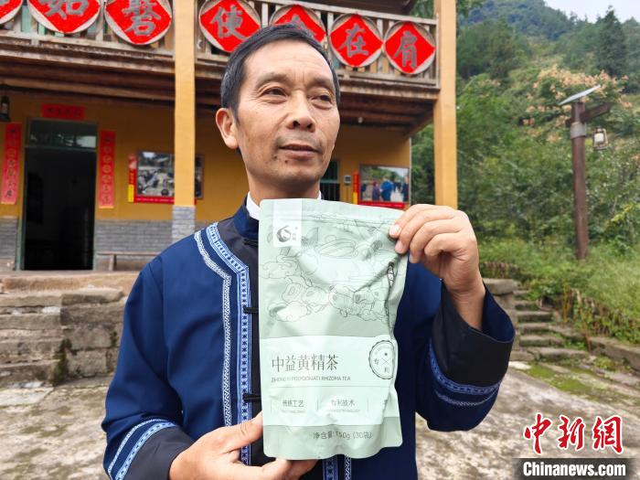 圖為華溪村支部書記、村主任王祥生展示黃精茶。中新網(wǎng)記者劉賢 攝