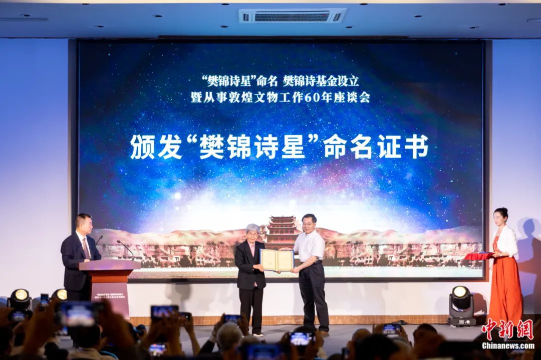 2023年7月10日,“樊錦詩星”命名、樊錦詩基金設立暨樊錦詩從事敦煌文物工作60年座談會在甘肅敦煌舉行。敦煌研究院供圖