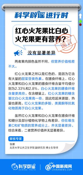中新網(wǎng)10月16日電 在膳食纖維上,白心火龍果的膳食纖維含量更高些;在含糖量上,紅心火龍果的糖含量比白心火龍果高一些,熱量也更高;紅心火龍果的多酚、類黃酮等抗氧化物質(zhì)高于白心火龍果。二者在維生素C和礦物質(zhì)的營養(yǎng)成分上,并無顯著差異。綜合來看,二者營養(yǎng)價值相差不大。(來源:@科學(xué)辟謠 @中國新聞網(wǎng) )