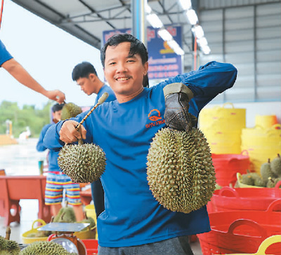 “我種植榴蓮12年了,幾年前有中國(guó)客商來(lái)到春蓬,我把果園包給了中國(guó)客商,這樣價(jià)格穩(wěn)定、收款及時(shí),榴蓮大批量成熟時(shí)不用發(fā)愁銷路?!辈峦邩?lè)呵呵地說(shuō),“我還沒(méi)去過(guò)中國(guó),但知道泰國(guó)榴蓮在中國(guó)很受歡迎,我們很開心?!?/p>