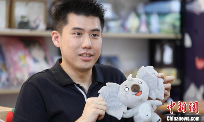 6月15日,創(chuàng)業(yè)臺青吳偉誠展示公司設計的動漫IP衍生品。中新社記者 張亨偉 攝