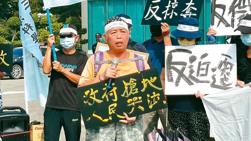 圖為遭征收區(qū)域的桃園居民不滿被征地,拉起布條抗?fàn)?。圖自《聯(lián)合報》