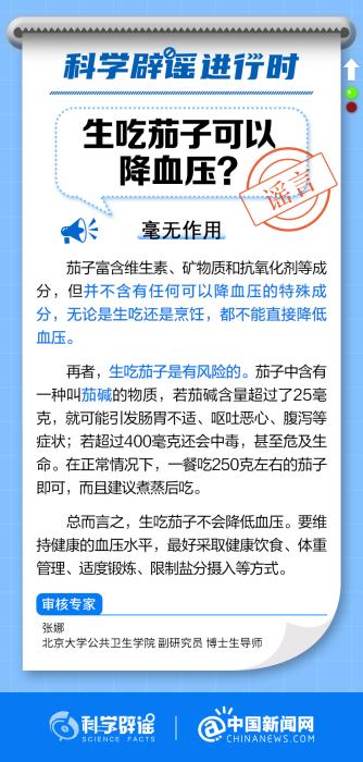 中新網(wǎng)10月25日電 茄子富含維生素、礦物質(zhì)和抗氧化劑等成分,并不含有任何可以降血壓的成分,無論是生吃還是烹飪,都不能直接降低血壓。(來源:@科學辟謠 @中國新聞網(wǎng))