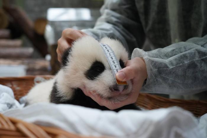 園方表示,熊貓寶寶的體重已經(jīng)達(dá)到3428克,與之前的體檢結(jié)果相比,身長增加了7厘米,尾巴的增長速度有所放緩,長度依然保持在6.8厘米。