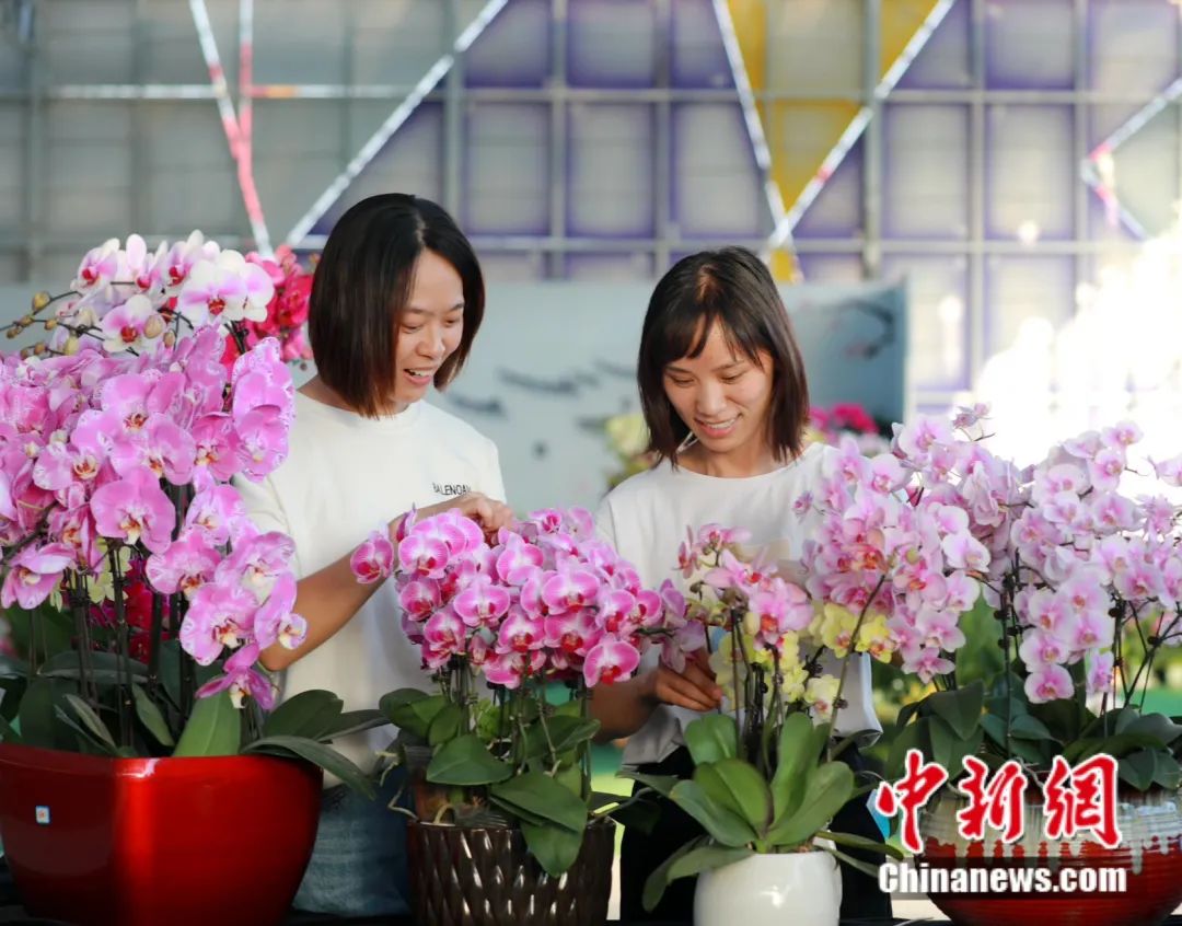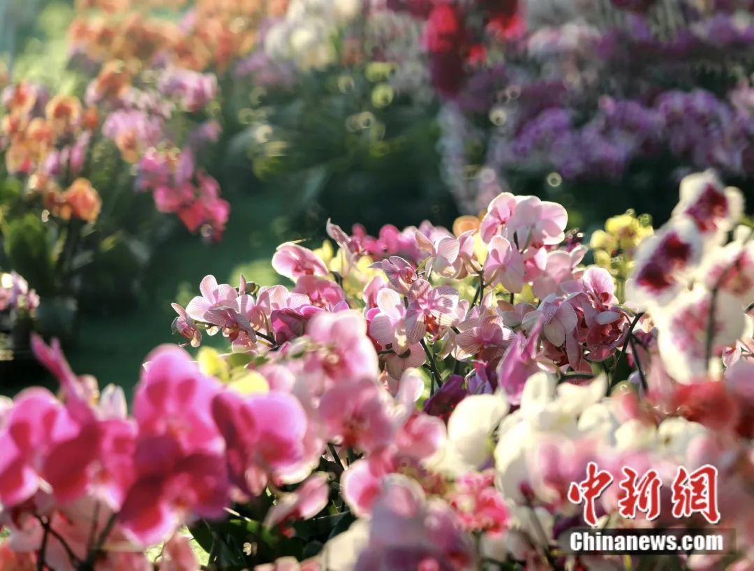 32萬(wàn)平方米的溫室大棚內(nèi),不同品種的蘭花競(jìng)相開(kāi)放,形成一片蔚為壯觀的蘭花海洋。