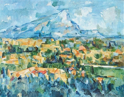由此,塞尚、梵高、高更等藝術家的繪畫語言逐漸展現(xiàn)出不同于印象派的風格。塞尚在繪畫中拋棄了明暗和透視,尋求色彩與形狀的互相牽制,使畫面結構更加穩(wěn)定嚴謹,制造出物與物之間的空間張力。他的油畫作品《圣維克多山》(見圖,曲音供圖)用冷暖色搭配勾勒出許多幾何形狀的色塊,形如房屋、狀似樹木,以相互交疊的視覺呈現(xiàn)替代了透視效果,暗示出遠近和前后關系,令畫面中的山峰無論從哪個角度觀看都顯得雄偉壯麗。