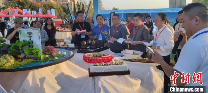 評委們在認(rèn)真聽取菜品制作人講述菜品創(chuàng)意和文化內(nèi)涵。 郭斌 攝
