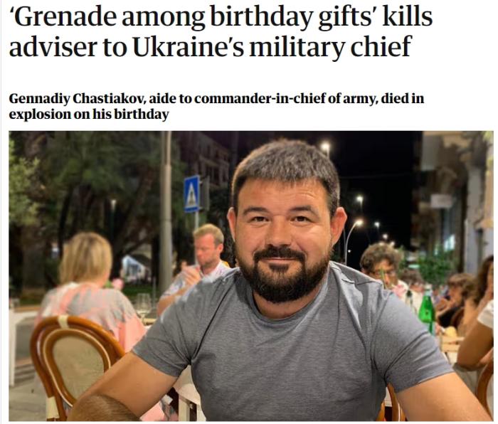 據(jù)報(bào)道,當(dāng)天,烏克蘭武裝部隊(duì)總司令瓦列里·扎盧日內(nèi)在社交媒體Telegram上發(fā)文稱,“很不幸地,我的助手兼好友根納季·查斯季亞科夫少校(Gennadiy Chastyakov)今天在他的生日當(dāng)天身亡?!?/p>