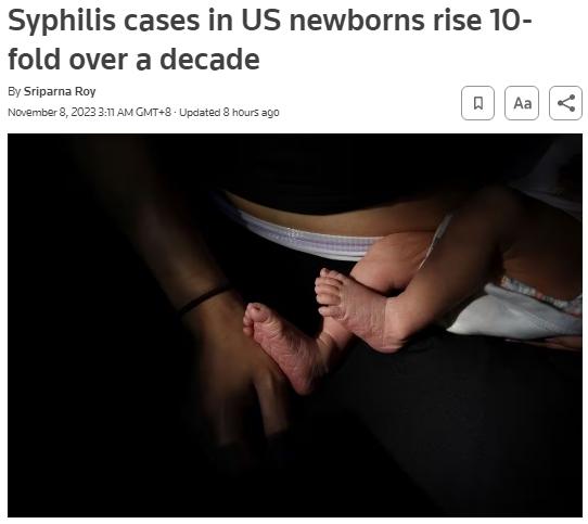 美國(guó)新生兒梅毒病例持續(xù)激增 十年內(nèi)增長(zhǎng)10倍多