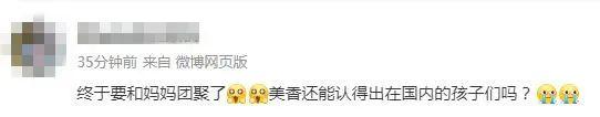 還有網(wǎng)友感慨,“終于要和媽媽團聚了,美香還能認(rèn)得出在國內(nèi)的孩子們嗎?”