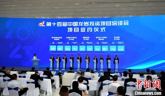 11月8日,第十二屆海峽兩岸機(jī)械產(chǎn)業(yè)博覽會暨第十四屆中國龍巖投資項目洽談會在福建省龍巖市拉開帷幕。圖為現(xiàn)場簽約。中新網(wǎng)記者呂明攝