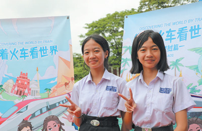 今年6月,由中國(guó)中車集團(tuán)有限公司舉辦的中車“中老文化海外交流會(huì)”在老撾萬(wàn)象舉行,老撾民眾可以近距離感受先進(jìn)的軌道列車科技和鐵路文化。圖為參加活動(dòng)的萬(wàn)象宗佩中學(xué)學(xué)生。