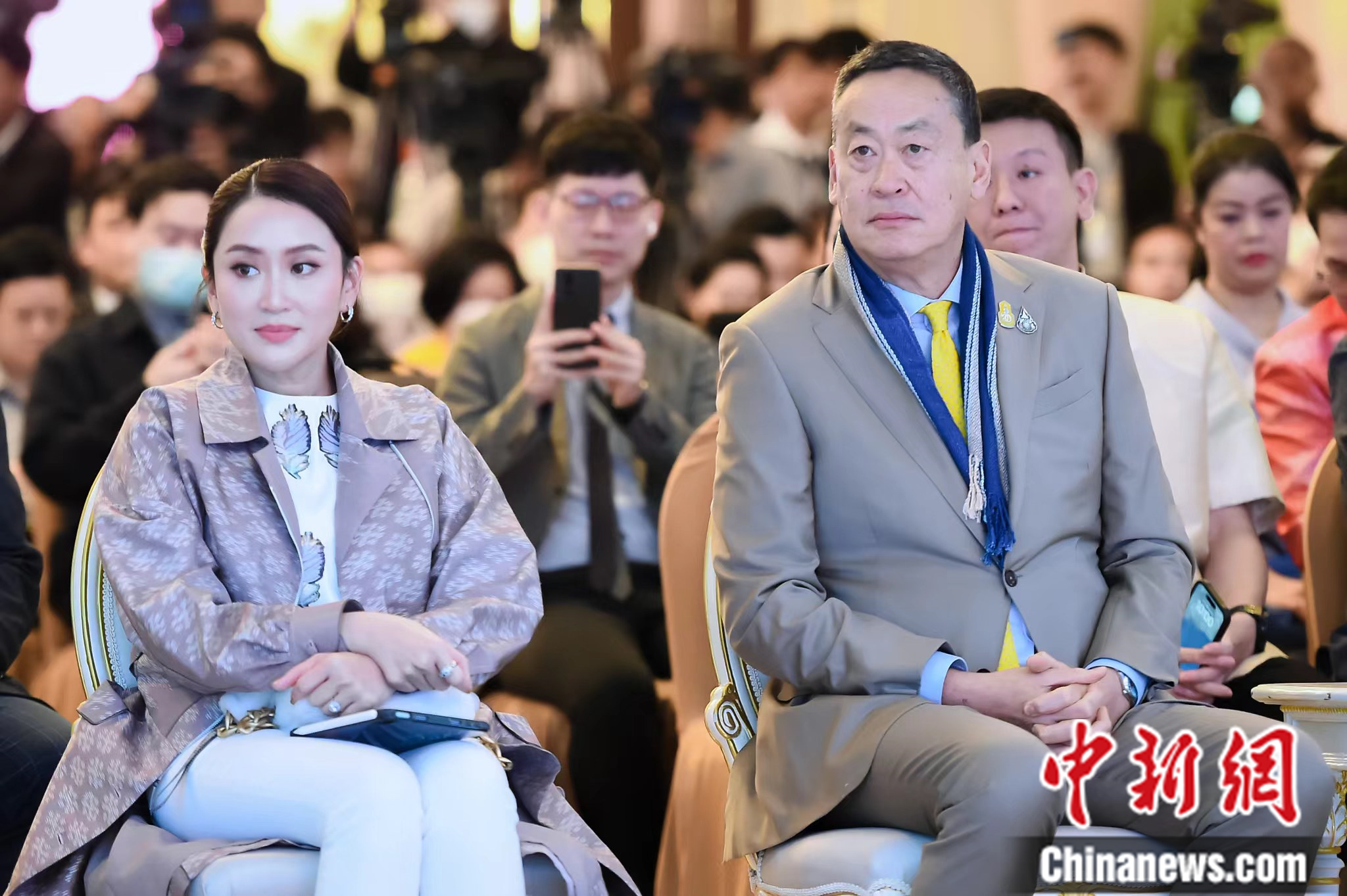 泰國總理賽塔(右)和泰國國家軟實(shí)力戰(zhàn)略委員會(huì)副主席貝東丹(左)等出席啟動(dòng)儀式。趙婧楠攝