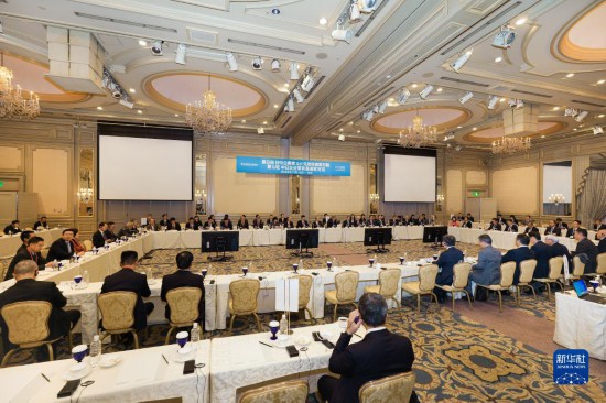 這是11月15日在日本東京拍攝的第九輪中日企業(yè)家和前高官對話會現(xiàn)場。新華社記者 張笑宇 攝