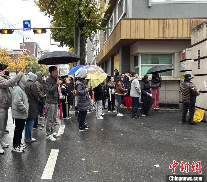 當(dāng)?shù)貢r(shí)間16時(shí)20分許,中新社記者來到首爾市麻浦區(qū)延南洞景城高中校門外,此時(shí)距離最后一門必考科目結(jié)束還有約17分鐘。不少家長在雨中等待考生。