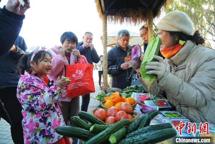 11月18日,天津市西青區(qū)辛口鎮(zhèn),民眾品嘗沙窩蘿卜。當(dāng)日,天津第十六屆沙窩蘿卜文化旅游節(jié)開幕。本屆蘿卜節(jié)以“國禮沙窩 富硒瑰寶”為主題,設(shè)置了沙窩蘿卜品鑒、特色農(nóng)產(chǎn)品展示等活動?! ≈行律缬浾?佟郁 攝