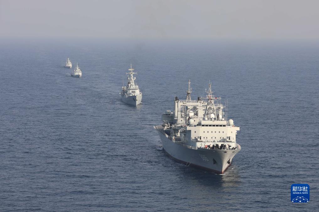 中巴“海洋衛(wèi)士-3”海上聯(lián)合演習在阿拉伯海北部??沼蚺e行,雙方艦艇組織編隊運動(11月14日攝)。新華社發(fā)(姜霞攝)