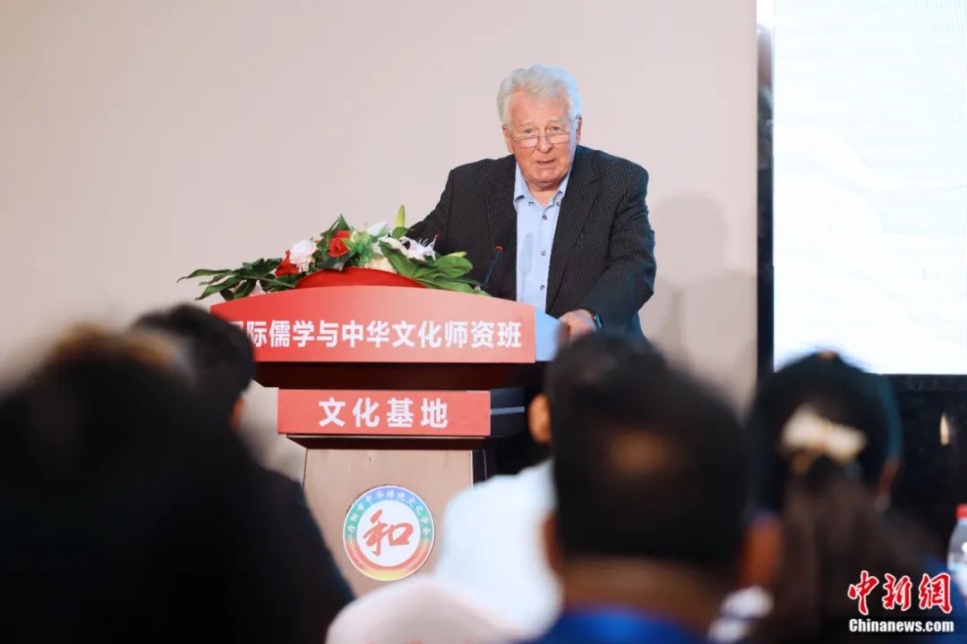 2023年8月14日,中西比較哲學(xué)家安樂哲在活動(dòng)現(xiàn)場(chǎng)致辭。李國慶 攝