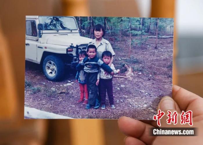 1998年夏,時(shí)年35歲的柳霞與兒子雨果及烏云、烏蘭合影。王偉 攝