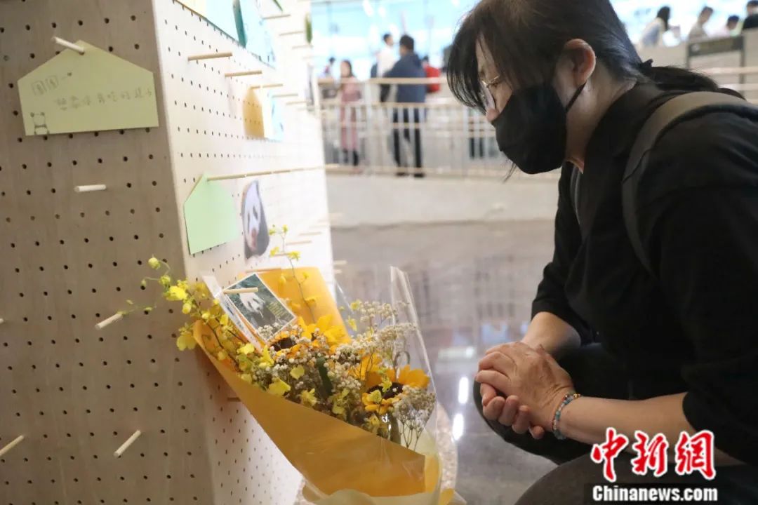 不少家長帶著小朋友來到現(xiàn)場參加活動,小朋友在卡片上慢慢畫出心中熊貓的模樣,并寫下想對“團團”說的話。有的民眾還送來鮮花,表達(dá)對“團團”的喜愛和懷念之情。
