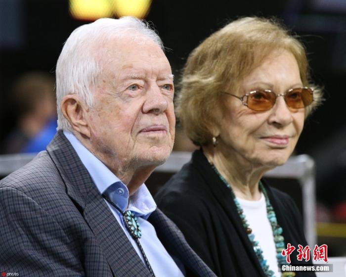 羅莎琳·卡特的丈夫、美國前總統(tǒng)吉米·卡特于1977年至1981年出任美國第39任總統(tǒng)。今年2月18日,卡特中心發(fā)表聲明說,在經(jīng)過一系列短期住院治療后,吉米·卡特決定在家中接受臨終關(guān)懷。圖為吉米·卡特(左)與羅莎琳·卡特(右)資料圖。