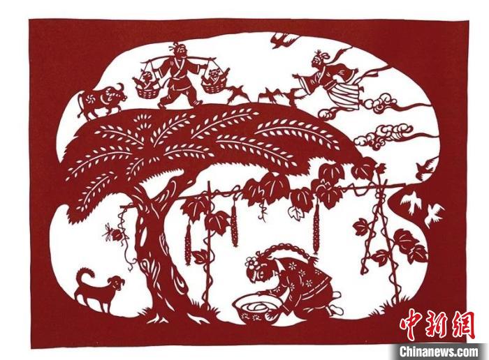 醫(yī)巫閭山滿族剪紙作品《乞巧節(jié)》。圖片來源:臺(tái)灣《聯(lián)合報(bào)》
