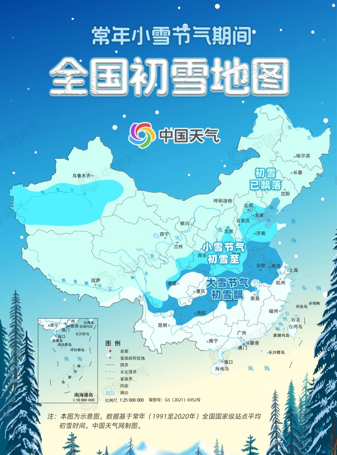 而從常年小雪節(jié)氣期間全國初雪地圖可以看出,除了華北、黃淮一帶會(huì)在小雪節(jié)氣期間迎來初雪以外,長江中下游地區(qū)一般要到大雪節(jié)氣才會(huì)見到雪花;至于再往南的華南地區(qū),一年中能不能見到雪確實(shí)就要看運(yùn)氣了。