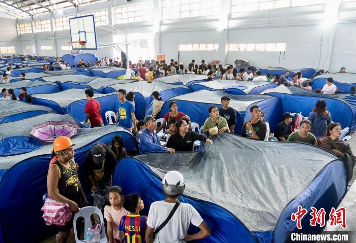 當地時間11月21日,菲律賓北薩馬省受災民眾被轉移至一處臨時避難場所。(北薩馬省信息辦公室供圖)