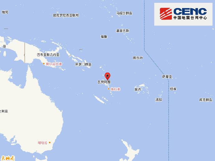 中新網(wǎng)11月22日電 中國地震臺(tái)網(wǎng)正式測(cè)定:11月22日12時(shí)47分在瓦努阿圖群島(南緯15.05度,東經(jīng)168.15度)發(fā)生6.9級(jí)地震,震源深度10千米。