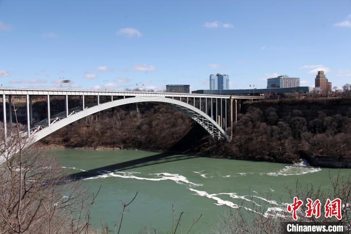 位于尼拉加拉瀑布旁、連接加拿大安大略省和美國紐約州的彩虹橋美國一側(cè),11月22日臨近中午時發(fā)生汽車爆炸事件,導(dǎo)致這座作為加美兩國邊境口岸的大橋緊急雙向關(guān)閉。資料圖為2020年3月21日在加拿大一側(cè)拍攝的彩虹橋。 中新社記者 余瑞冬 攝