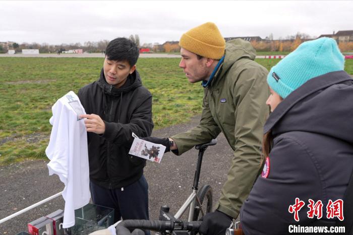 圖為選手展示其獲得“車騎將軍”主題系列T恤。德國漢文化藝術交流中心供圖