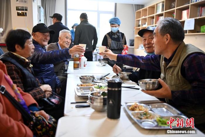 圖為11月27日,甘肅省蘭州市建蘭路街道吳家園社區(qū)養(yǎng)老服務中心內,“老中青”組成“飯搭子”在社區(qū)食堂就餐。 中新社記者 九美旦增 攝