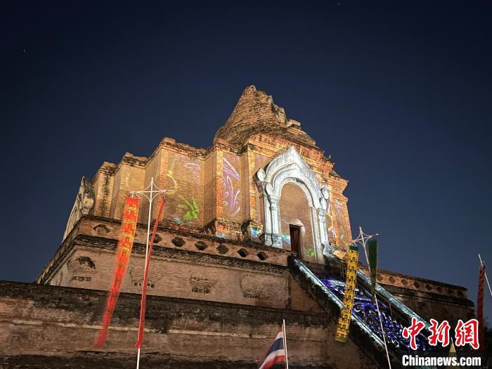 這些栩栩如生的投影如同一部生動(dòng)的電影,講述著泰北的歷史、文化和信仰。在夜色中,契迪龍寺的佛塔變成了一個(gè)故事的舞臺(tái),吸引著無(wú)數(shù)的游客和信徒前來(lái)觀看。
