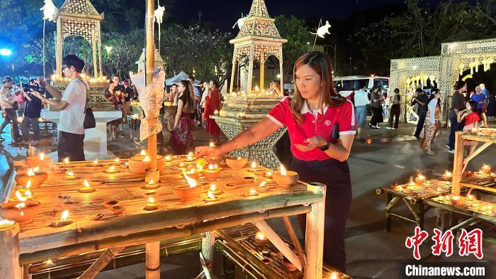 中新網(wǎng)曼谷11月28日電(李映民 趙婧楠)“月圓之夜,河水上漲,青年男女載歌載舞漂水燈,漂水燈,幸福將陪伴你我……”伴隨著悠揚(yáng)的古典樂(lè)曲,泰國(guó)古城清邁的濱河邊,民眾穿著傳統(tǒng)服裝,手里捧著精心制作的水燈,放到河面上,隨著水流緩緩漂去……