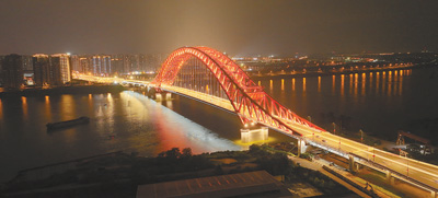 在流經(jīng)湖南省株洲市的湘江水面上,架著一座弧形設(shè)計(jì)的紅色大橋,北起清水塘大道,上跨清霞路,往南越過湘江,對(duì)接珠江北路落地,全長(zhǎng)2.85公里,橋身舒展大氣,被市民稱為“湘江最美大橋”,它就是清水塘大橋。這座大橋由中交三航局投資建設(shè)并運(yùn)營(yíng),與不遠(yuǎn)處的清水塘城市公園相互映襯,成為中交集團(tuán)參與老工業(yè)區(qū)搬遷改造的代表作。