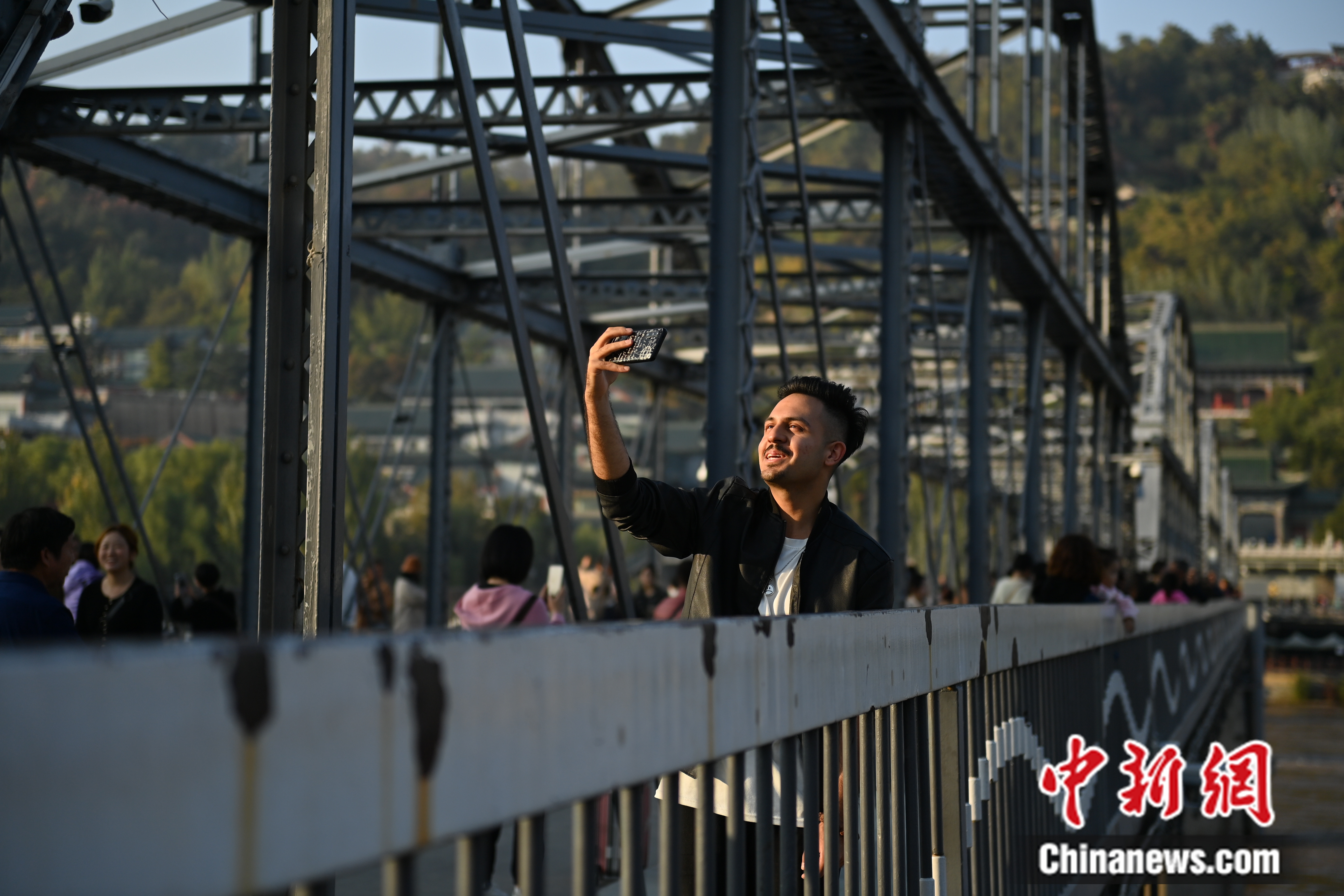蘭州理工大學(xué)留學(xué)生潘迪通過(guò)社交平臺(tái)向朋友分享甘肅蘭州標(biāo)志性建筑中山橋。中新網(wǎng)記者 李亞龍 攝