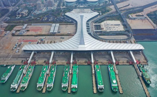 這是??谛潞L裝碼頭客運綜合樞紐站項目(11月29日攝,無人機照片)。新華社記者郭程攝