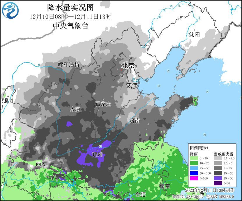 中新網(wǎng)12月11日電 據(jù)中央氣象臺網(wǎng)站消息,12月10日以來,華北、黃淮等地出現(xiàn)中到大雪,局地暴雪或大暴雪,新增積雪深度3~8厘米,部分地區(qū)超過10厘米;山西、河南、陜西、河北、內(nèi)蒙古等地共128個國家氣象觀測站日降水量突破12月極值。中東部地區(qū)氣溫普降8~12℃,局地14℃以上,北方部分地區(qū)出現(xiàn)6~8級陣風。