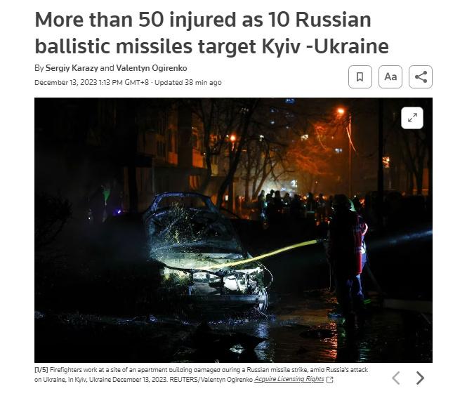 據(jù)報(bào)道,烏克蘭空軍在社交媒體上表示,烏克蘭防空系統(tǒng)于當(dāng)日凌晨3點(diǎn)左右擊落了所有10枚瞄準(zhǔn)基輔的彈道導(dǎo)彈。導(dǎo)彈碎片落在流經(jīng)基輔的第聶伯河沿岸的四個(gè)地區(qū),造成了一定程度的人員傷亡和破壞。