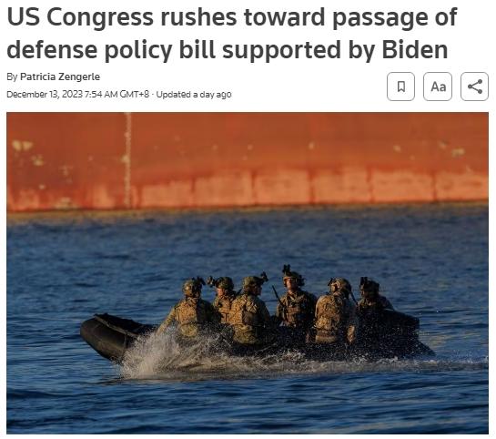 與此同時,美國總統(tǒng)拜登12日表示,強烈支持國會參眾兩院迅速在年底前通過這份2024財年《國防授權法案》。