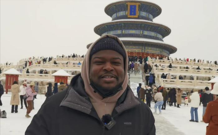 當日正值大雪,銀裝素裹的天壇宛如一幅畫卷,古老的祈年殿在白雪的映襯下更顯莊重肅穆。留學生們沉浸在大雪紛飛的美景中,紛紛拿出手機互相打卡拍照,記錄下這美好瞬間。哈薩克斯坦籍留學生阿迪力(ARYSTAN ADIL)向記者介紹,這是他第一次來到天壇,“天壇是古代皇帝祭天祈雨的地方,我對中國的歷史很感興趣?!卑⒌狭φf。