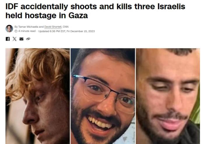 據美國有線電視新聞網(CNN)報道,以色列國防軍發(fā)言人赫格里在新聞發(fā)布會上表示,“在謝賈亞的戰(zhàn)斗中,以色列國防軍錯誤地將三名以方人質視為威脅。軍隊向其開火,他們被打死?!?/p>