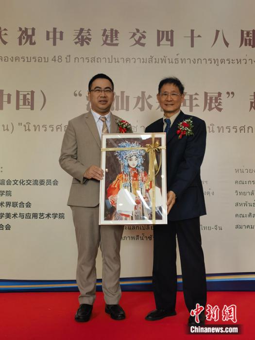 潮汕水彩畫院院長李小澄(右)向泰國文化部贈(zèng)送畫作。李映民 攝