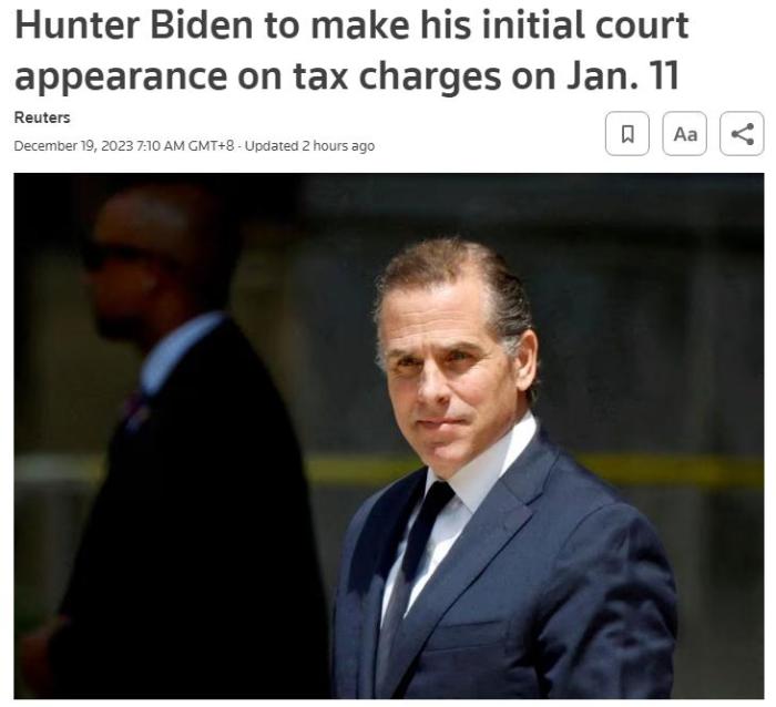 中新網(wǎng)12月19日電 據(jù)路透社18日報道,法庭文件顯示,美國總統(tǒng)喬·拜登的兒子亨特·拜登將于2024年1月11日就稅務(wù)指控,在洛杉磯首次出庭。